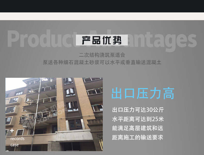 此設(shè)備是針對二次構(gòu)造專門研發(fā)的細石混凝土輸送設(shè)備,體積小,重量輕,移動方便,是狹窄施工環(huán)境的選擇;能夠保證我們合理施工,大大減輕了我們的工作量。
