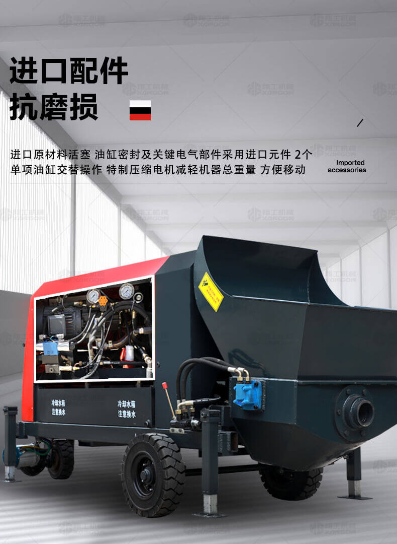 這款7.5KW型澆筑泵帶有自動攪拌功能,性能可靠,設備各個結構制造科學,電機功率大、性能穩定、施工效率高等優勢,使用電動澆筑泵大大提高了施工效率,降低勞動強度,節約人工,被廣泛應用。是工程施工的好幫手。