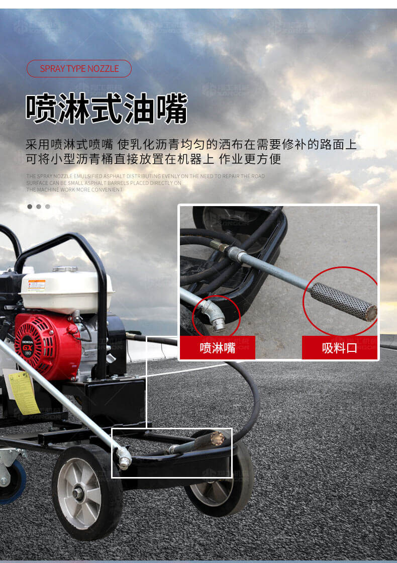 小型乳化瀝青撒布機用于修補瀝青道路上的坑槽,裂縫或?qū)磳⒗匣穆访孢M行表層噴層修復(fù)翻新,由于在養(yǎng)護瀝青道路時經(jīng)常需要對路面均勻噴灑乳化瀝青或防水材料。