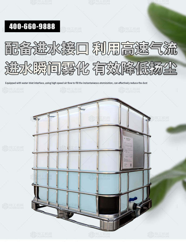5、配備進水接口,利用高速氣流將進水瞬間霧化,可有效降低揚塵。