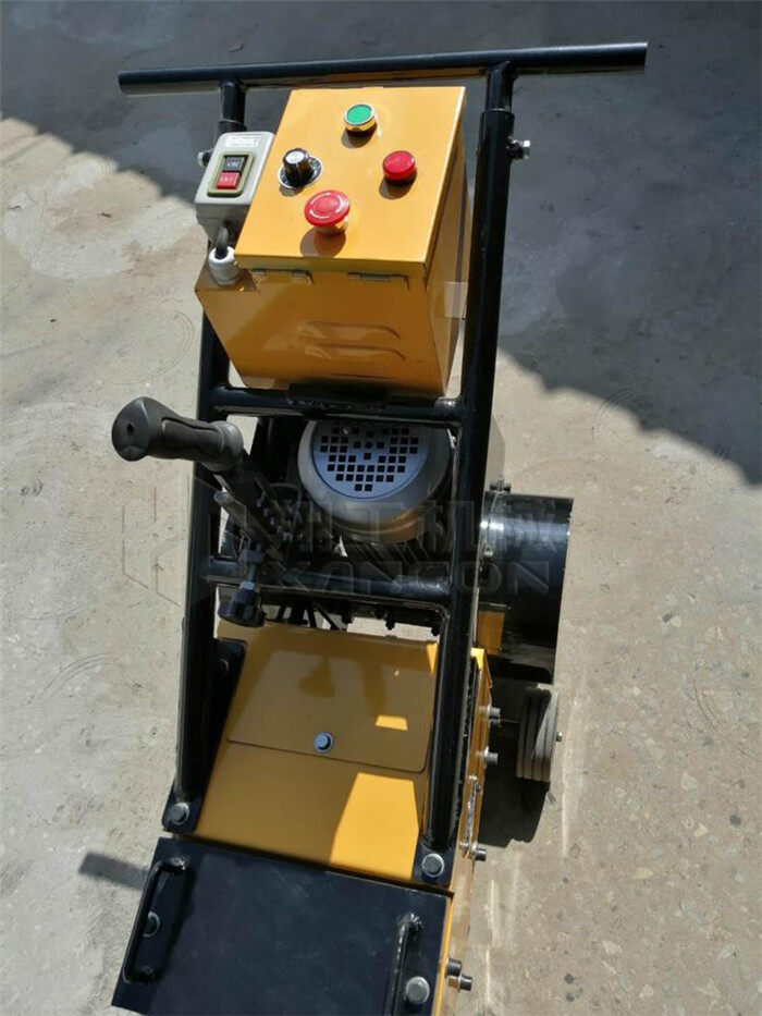 4:全部調節完畢后,先打開右邊的ON啟動開關,OFF為鏟刀的停止開關,中間面板上面綠色為電源指示燈,左邊紅色為緊急停止開關,右邊綠色的為行走電機啟動開關,最下面黑色為行走電機調速開關,可根據地面情況選擇合適的行走速度;