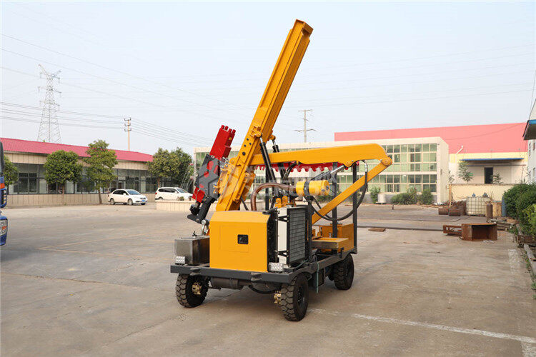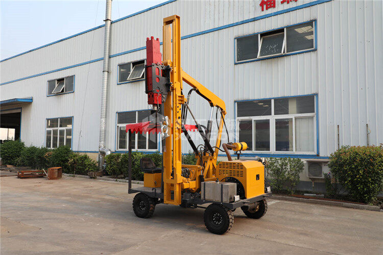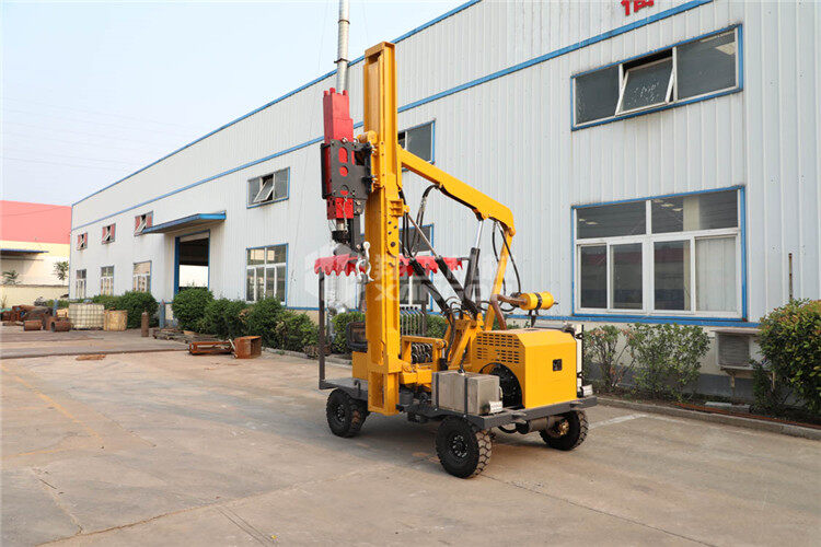 小四輪打樁機適用于公路護欄鉆孔、打樁、拔樁,其他各種場地打樁(農場、園林、果園),公路野外工程施工。